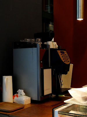 於是文彥約了時間帶好所有試豆工具,前往位於內湖科技園區的Le Goût烘焙坊,旁邊的確是便利商店,而且店內確實有麵包架,難怪工作人員會搞錯。Le Goût整個店面正坐落於一級咖啡戰區,幾乎被所有叫的出名字的連鎖咖啡店圍繞著。一到現場我們整個嚇到,原來這家Le Goût就是我們的偶像林先生新開的麵包店,而且技術總監正是剛得世界麵包冠軍的吳寶春師父,好不讓人肅然起敬的麵包店啊。因為店即將開張,林先生看起來頗忙,文彥煮了兩杯咖啡給林先生試喝,一杯是舊豆,一杯是生態綠的咖啡豆,林先生品嚐與比較過後,不愧是冠軍麵包師父的推手,味覺果然靈敏專業,一試就知好壞,於是林先生因為肯定生態綠咖啡的品質,很爽快的決定換豆,我跟文彥真是非常開心,算算而這樣的緣分竟然鋪陳了快兩年。